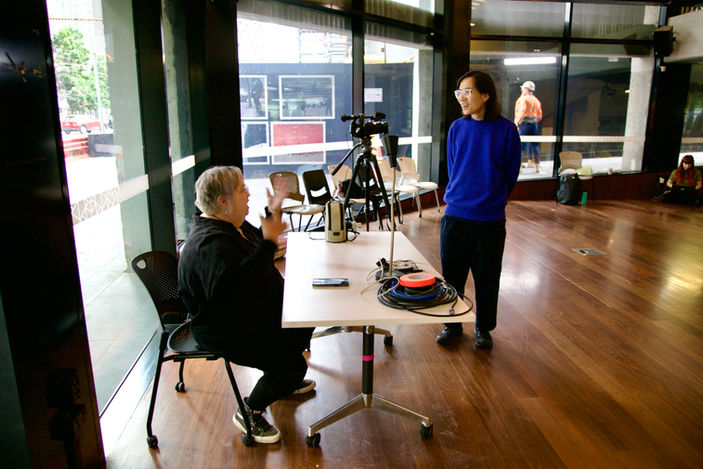Body Here uses a web camera to show artists in a session of art-making or performance.